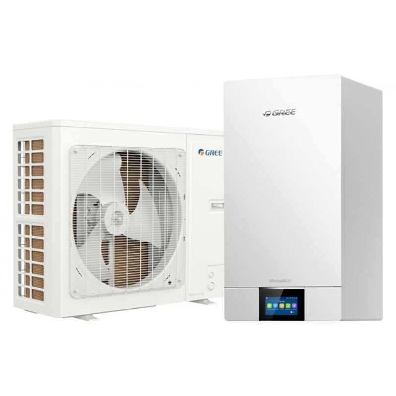 Тепловые насосы Gree GRS-CQ12PdG/NhH2-M серии Versati III (сплит-системы с водяным баком) «воздух-вода» с инверторными компрессорами с впрыском пара предназначены для нагрева воды для горячего водоснабжения или напольного отопления, а также для отопления или охлаждения воздуха в помещении до 120 кв.м.Особенности и функции Gree GRS-CQ12PdG/NhH2-M
